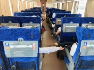 特急サザン指定席で、途中の尾崎駅まで行きます。子どもたち、気持ちエー