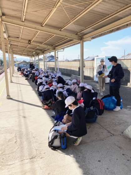 たくさんの思い出を胸に、海洋センターを後にしました。南海電車 淡輪(たんのわ)駅で、尾崎駅までの電車を待っています。