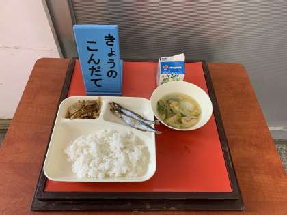 焼きししゃも、五目汁、きんぴらごぼう、ごはん、牛乳 です。
