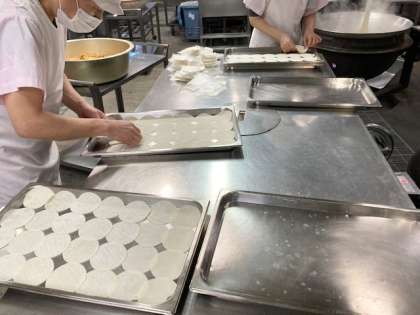 今日の献立「変わりピザ」をひとつずつ作ってくださっています。