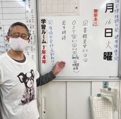 そして、大阪市教育センターによるOJT(若手教員育成支援)研修があります。このOJT研修は、新採用2年目の先生を対象にしたもので、本校は、鈴木先生、中西先生、村山先生の3人が該当します。講師として教育指導員 高井 正道先生がお越しくださり、3人の授業をご参観くださり、ご指導ご助言をいただきます。