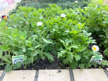管理作業員の日野さんが植えてくださったクリサンセマムの花が、育っています。玄関を少しでも明るくしたいというお気持ちが、草花にも通じたのでしょう。滝感謝。