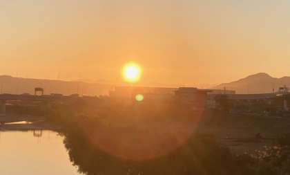 大和川から見る朝日があまりにも眩しく、思わず写メを撮りました。そして、塩草立葉小学校につながるすべての方にとって、穏やかで優しい一日でありますように、と心の中で願いました。