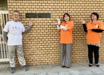 今朝、浪速区こども連合協議会の橋本広報部長さん(中)と正木さん(右)がお越しくださり、「ぽよよん行進曲」の踊りを収録してくださいました。