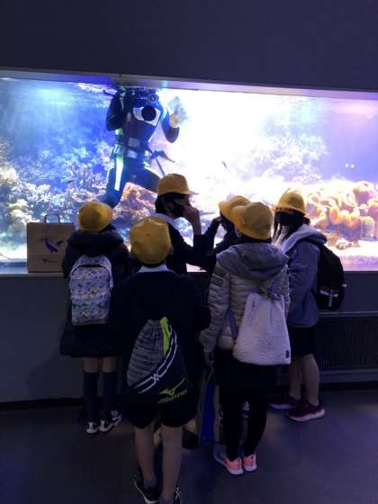 たまたま水槽の中を掃除している飼育員さんを発見しました!レアな水槽を見られてラッキーですね^_^