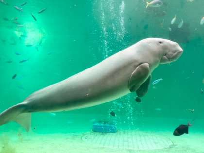 人魚伝説のモデルといわれるジュゴンちゃんです。日本では、ここ鳥羽水族館だけでしか見ることができません。全長2メートル60センチです。