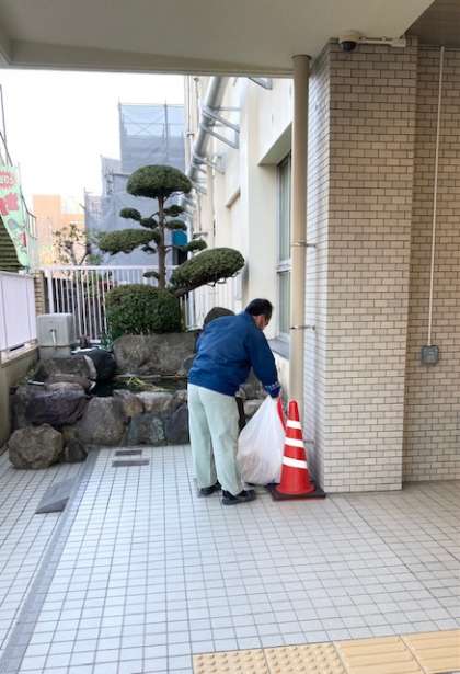 (上)管理作業員の日野さん、いつもありがとうございます。