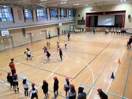 5・6時限目、4年生の子どもちゃんたちが、シュライカー大阪の皆さまにフットサルを教えていただきました。子どもたちは、楽しそうに活動していました。