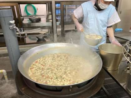 写真は、各クラス分を取り分けているところです。