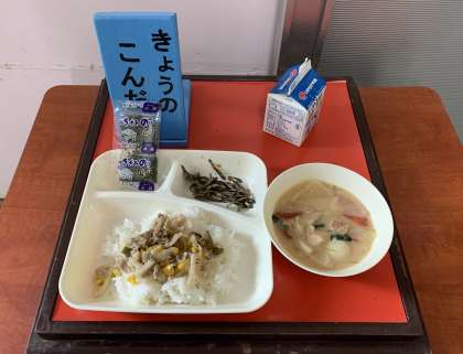 れんこんのちらしずし、ぞう煮、ごまめ、牛乳 です。