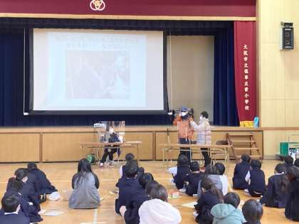 5年生が、視覚に障がいのある方からお話をお聞きして、実際にアイマスク体験をします。お話をしてくださった藤原 秀一様、松野 恵子様、そして浪速区社会福祉協議会の皆さま、ありがとうございます。