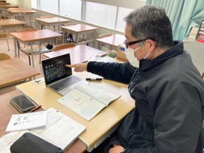 1組 阿佐先生 オンラインによる朝の会。ほぼ全員の子どもたちとつながっています!