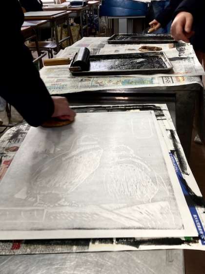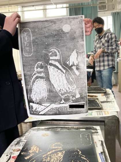 中・下 2組 金先生 版画 生き物を描こう