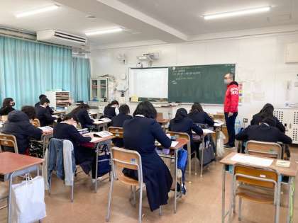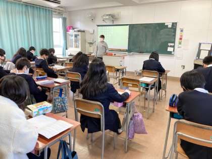 2組 小林先生 音楽 卒業式の歌を聴いています