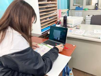 1組 小林先生 自宅にいるお友だちとオンライン学習中