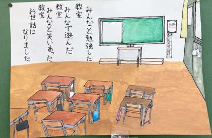 6年生の子どもちゃんたちが描いてくれた、思い出の場所とメッセージ。心温まる、ステキな作品ばかりです。