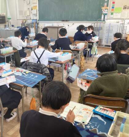 1組 粟飯原先生 図画工作 かさこじぞう(国語の教科書にあります)