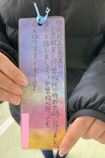 6年生の子どもちゃんから、手作りのステキなしおりをいただきました。宝物です!!滝感謝!!