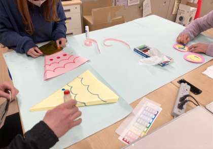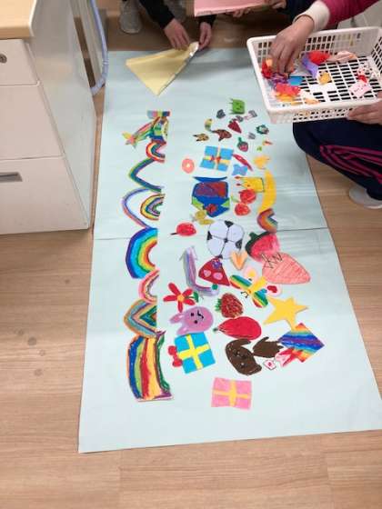 1年生の先生方が、6年生に卒業お祝いメッセージを作っています。可愛らしい、しかもクオリティの高いものができつつあります。とても楽しみですね。