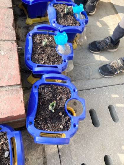 今朝、1年生の子どもちゃんが、「チューリップが大きくなったよ」と教えてくれました。