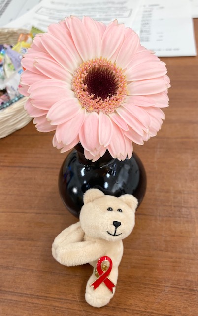 写真は、HIV/エイズへの理解と支援を示すレッドリボンちゃんです。