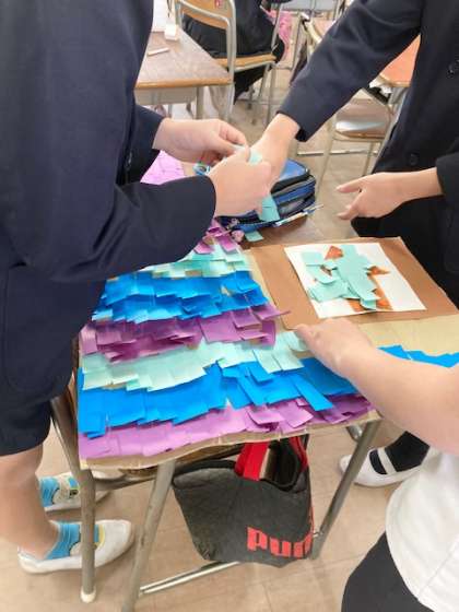 1組 阿佐先生 お楽しみ会の景品を作っています