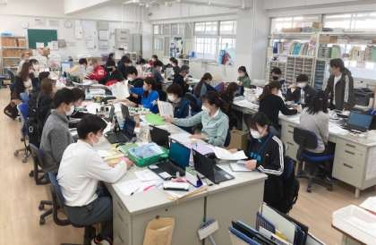 今朝の8時30分、教職員の打ち合わせ会をしています。明日の始業式、入学式に向けて、準備を整えています。