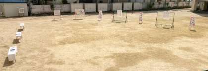 運動場で受付をします