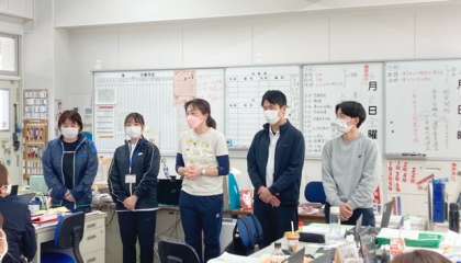 2組 出本、なかよし 日下部、1組 西本、3組 塩見、なかよし 村山 各先生です。