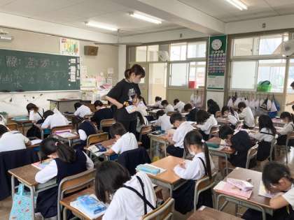 3組 酒井先生 道徳の教科書に名前を書こう