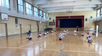2組 吉田先生 体育館で、体力つくり運動