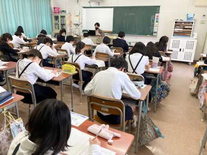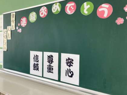 1組 李先生 後ろの黒板 安心、尊重、信頼