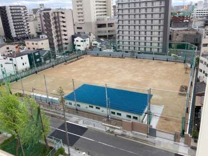 学校近くに、第2グラウンドが完成しました。もと難波特別支援学校の跡地です。50メートル走が余裕でできます。青色の建物は、体育倉庫やトイレ、放送室、手洗い場などが完備されています。滝感謝。