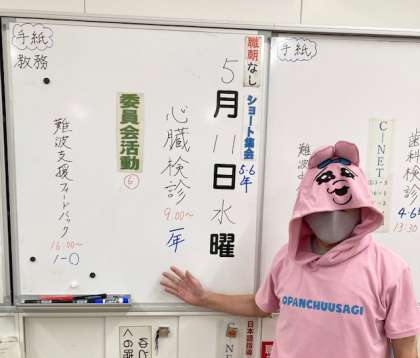 今日は、心臓検診(1年)と委員会活動(5、6年)があります。また、朝のショート集会で、5・6年が、たてわり活動の顔合わせとアイスブレークを行います。