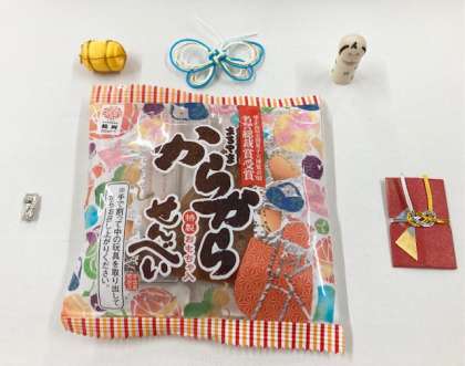 ところで、このお菓子、かわいいですね。中に、小さな和風のおもちゃが入っています。