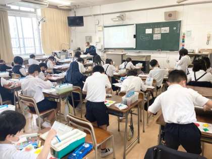 3組 青木先生 図画工作 ていねいに色をぬろう