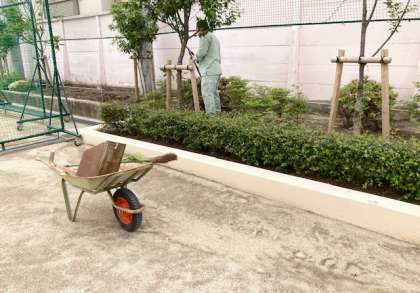 上 管理作業員の日野さんです。植物のせん定中です。