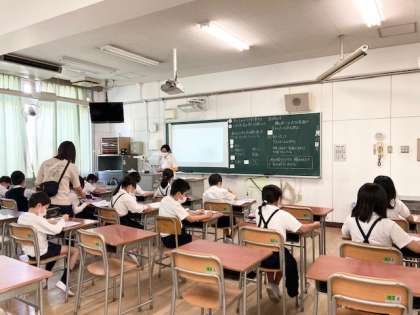 中・下 2組 2つのグループに分けて算数の授業をしています