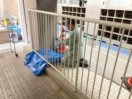 管理作業員の日野さんです。さびついてきた手すりに、ペンキを塗っています。
