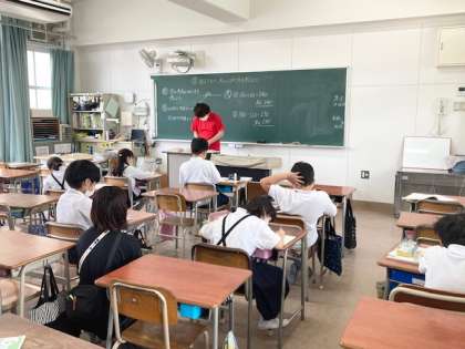 上・中 1組 2つのグループに分けて算数の授業をしています