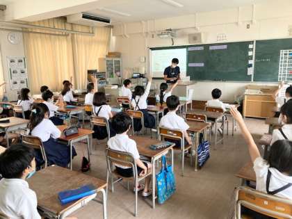 今日の4時限目、なかよし学級(特別支援学級)担当の濱田先生が、3年3組の教室で公開授業をしました。