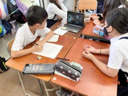 1組 平和について、話し合っています