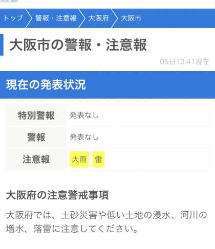 午後1時41分、大阪市の大雨警報は解除され、大雨注意報に変わりました。引き続き、お気をつけください。