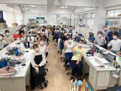 今朝、職員室で教職員の打ち合わせ会をしました。その後、ハイポーズ!