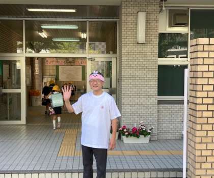 登校時に玄関でお迎えしていると、このヘアバンドを触ろうとする子どもが多く、朝からほっこりしました。