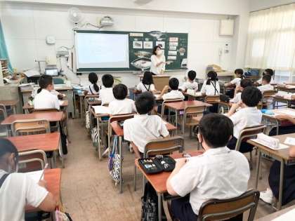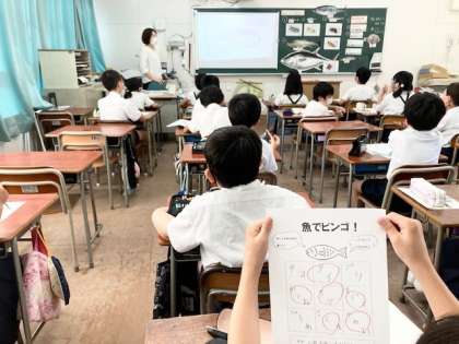 栄小学校の栄養教諭 大浦先生がお越しくださり、魚についての授業をしてくださいました。楽しいビンゴゲームをまじえてくださり、子どもたちもノリノリでした。
