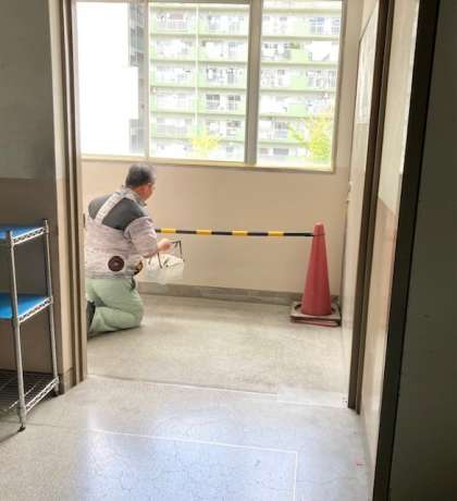 中・下 管理作業員の日野さん 壁の塗装をありがとうございます