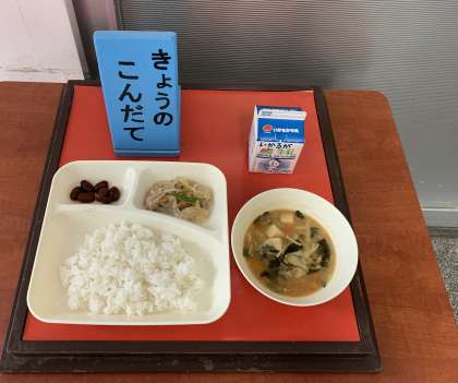 豚肉の甘辛焼き、みそ汁、金時豆の煮もの、ごはん、牛乳 です。
