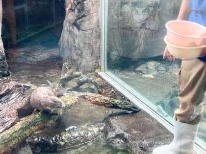 コツメカワウソちゃん、えさに夢中。
