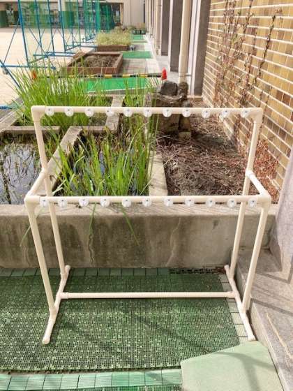 管理作業員の日野さんが、子どもたちのために水とう用のフックを作ってくださいました。